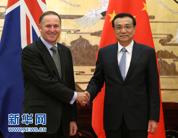 李克强指出,希望双方充分发挥中新自贸协定的积极效应,着重推进农牧业等重点领域合作。中方高度重视食品安全问题,我们欢迎新方对华出口更多高质量的农产品,同时希望新方严把食品安全关,切实维护中国消费者的权益。中国政府鼓励有实力、信誉好的中国企业赴新投资参与基础设施建设。希望新方放宽对中国技术工人和原材料进入新西兰的限制,为中国企业提供必要便利。