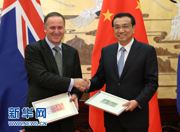 会谈后,两国总理共同出席了人民币与新西兰元直接交易的宣布仪式。