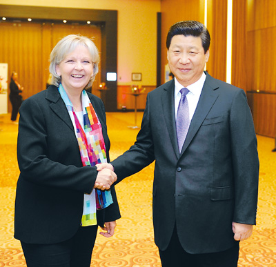 习近平指出,北威州是德国人口最多、经济实力最强的州之一,在中德贸易和投资合作中地位重要。北威州在经济转型、城市可持续发展方面成效显著,双方可以拓展合作。中方欢迎北威州充分利用杜伊斯堡港的特殊区位功能,积极参与丝绸之路经济带建设。双方还要密切人文交流,中方欢迎鲁尔区博物馆于2015年举办大型中国当代艺术联展。中国将在杜塞尔多夫开设总领馆。相信北威州同中国合作将结出更多丰硕成果。