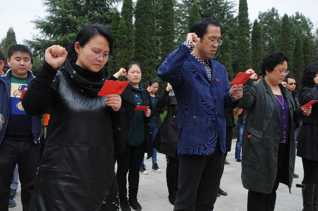 随后,参加祭扫活动的全体党员,在学院党委副书记吴大军的带领下,举起右手,大声宣读入党誓词,重温了庄严而隆重的入党宣誓仪式。本次活动是一次提高党员素质,坚定理想信念的党的群众路线教育实践活动的生动体验,参加人员纷纷表示将立足岗位,努力工作,勤奋学习,以实际行动发挥党员的先锋模范作用。